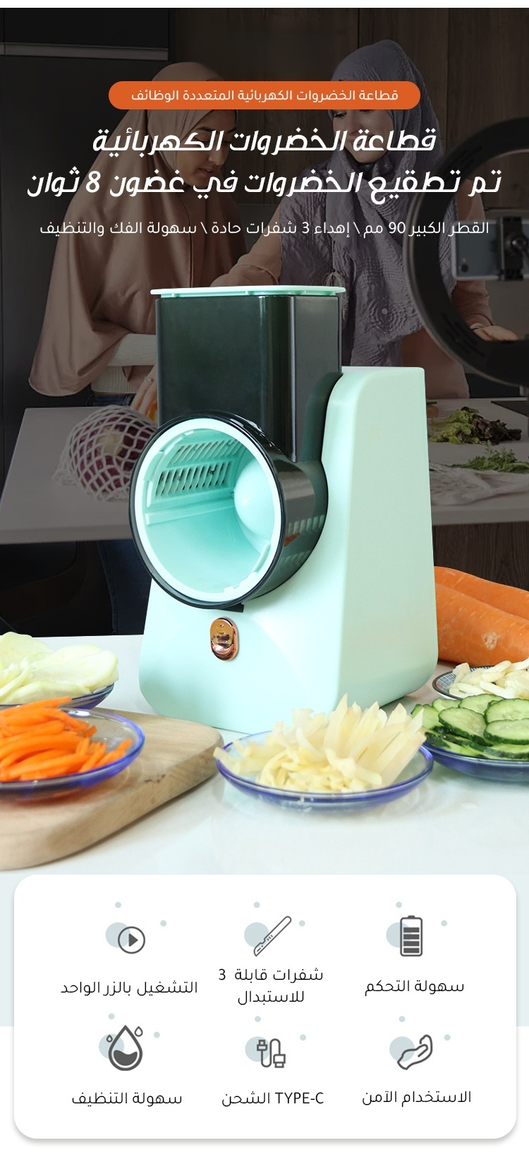 قطاعة خضروات كهربائية متعددة الوظائف