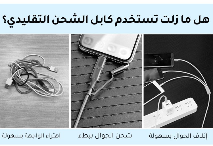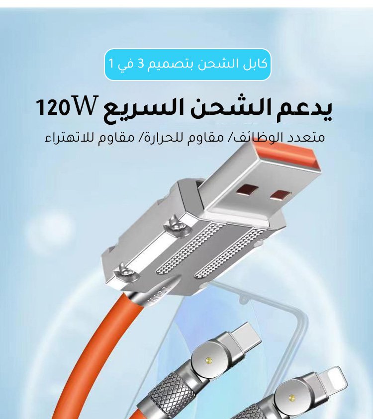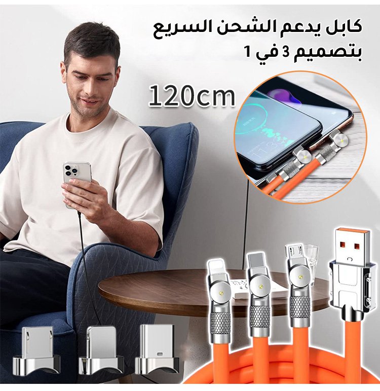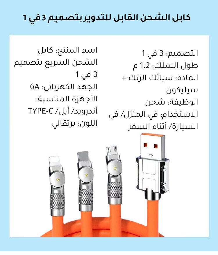 كابل الشحن القابل للتدوير بتصميم 3 في 1