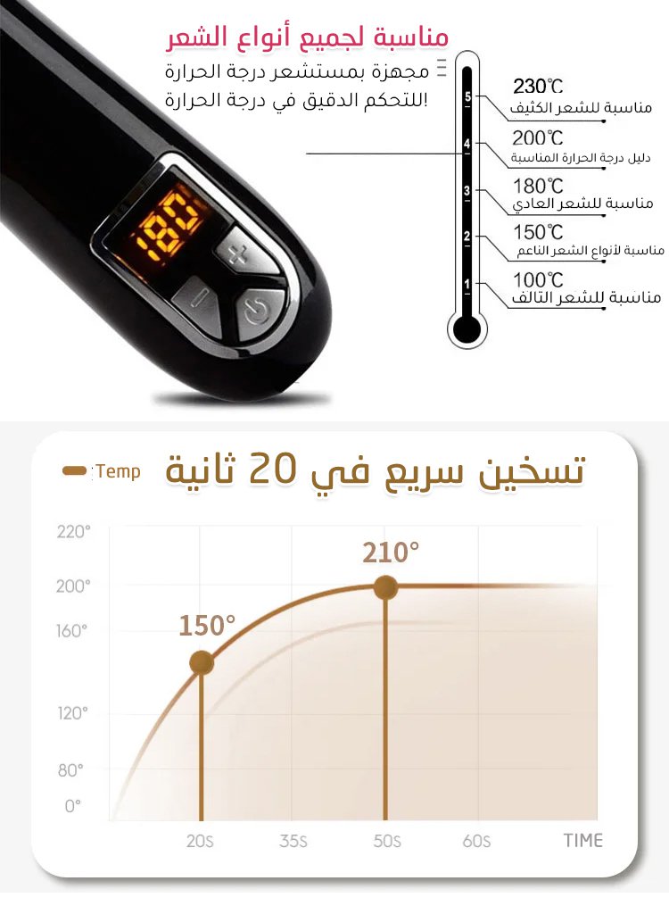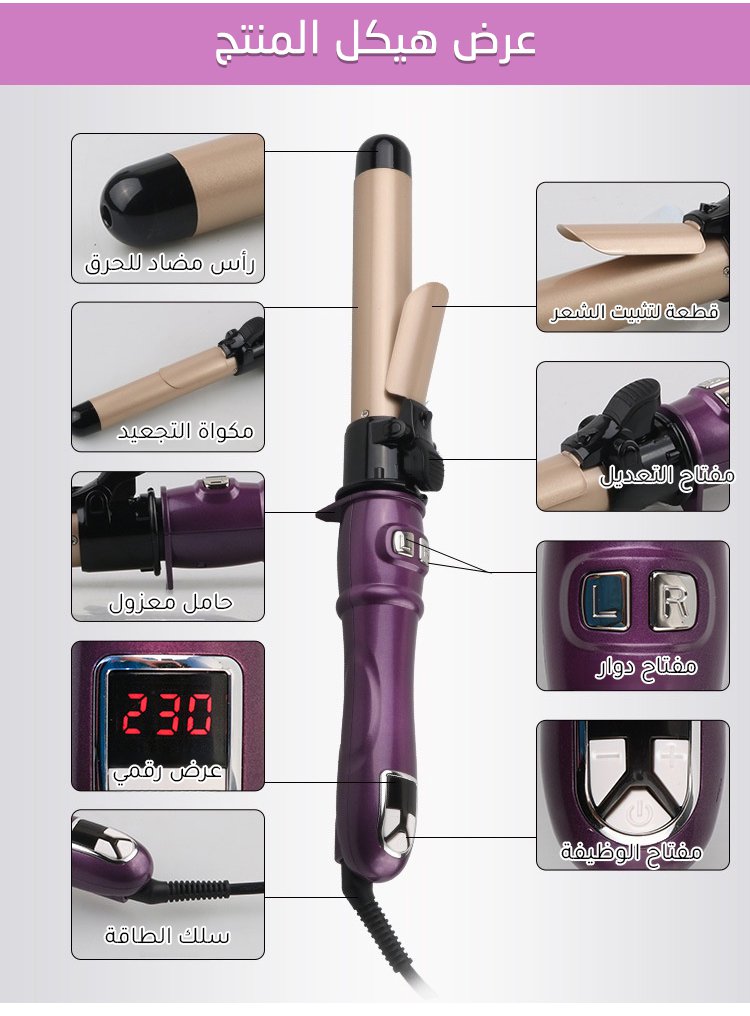 مكواة تجعيد الشعر الدوارة الأوتوماتيكية بالكامل